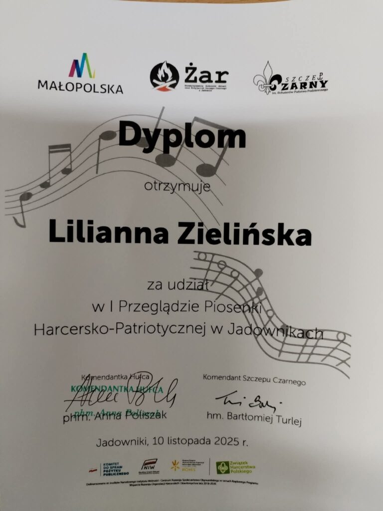 Przygoda z piosenką harcerską rozpoczęta. Najbardziej rozśpiewana harcerka z 1WDH „Mieszkowi Drużynnicy”- LILIANA ZIELIŃSKA-wzięła udział w Przeglądzie Piosenki Harcerskiej i Patriotycznej, który został po raz pierwszy zorganizowany przez Hufiec Brzesko. Emocji było co niemiara, a wspólnie spędzony czas wśród harcerzy i muzyczne doświadczenia na długo zostaną w naszej pamięci.
