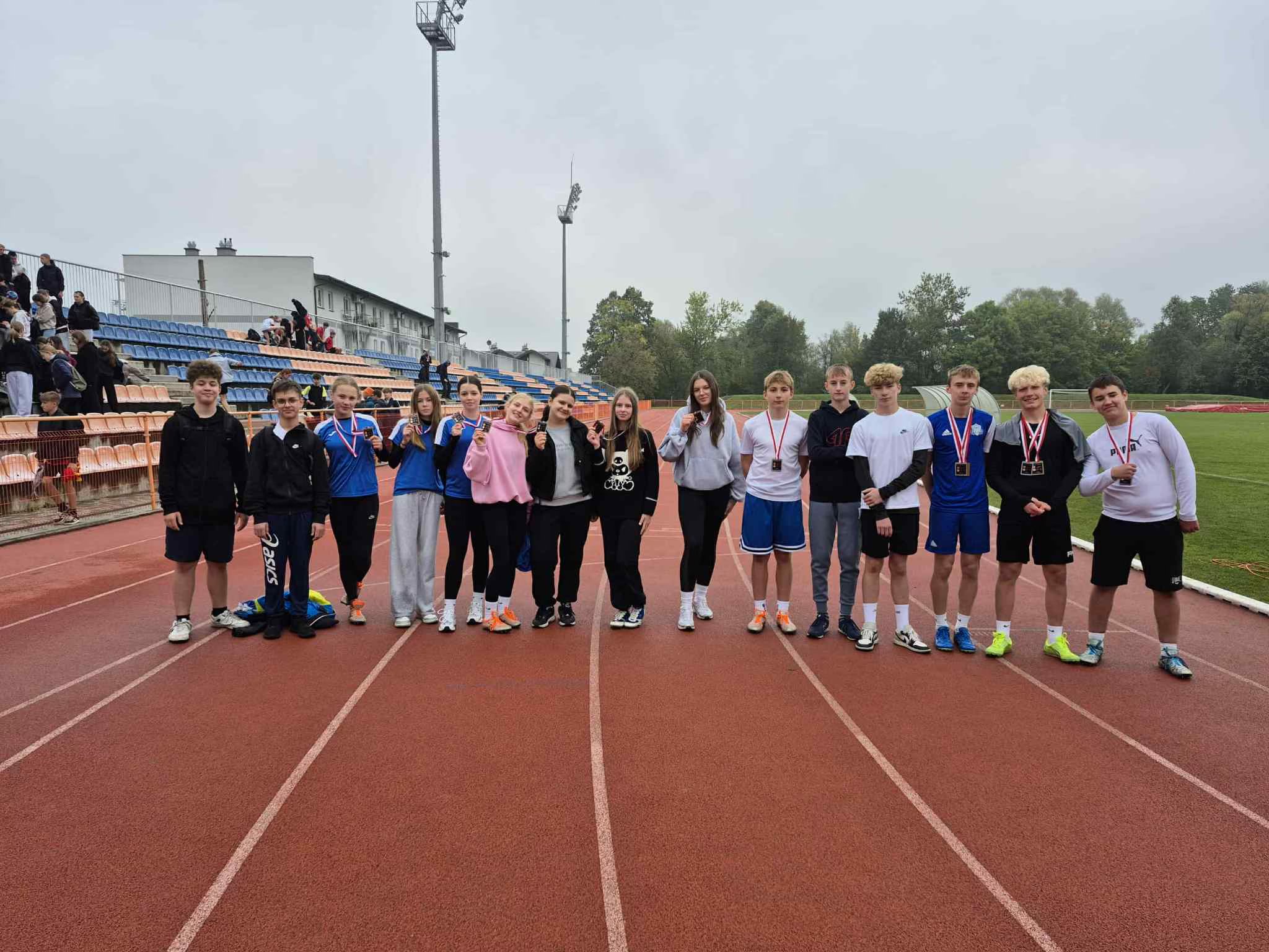 Miejsca drugie zajęli: Lena Dobek w pchnięciu kulą, Daria Szkarłat w biegu na 100 m, Laura Kluza w biegu na 300 m, sztafeta chłopców 4×100 m (Michał Łoboda, Szymon Bocoń, Paweł Białek, Kacper Chełmecki) ![]()