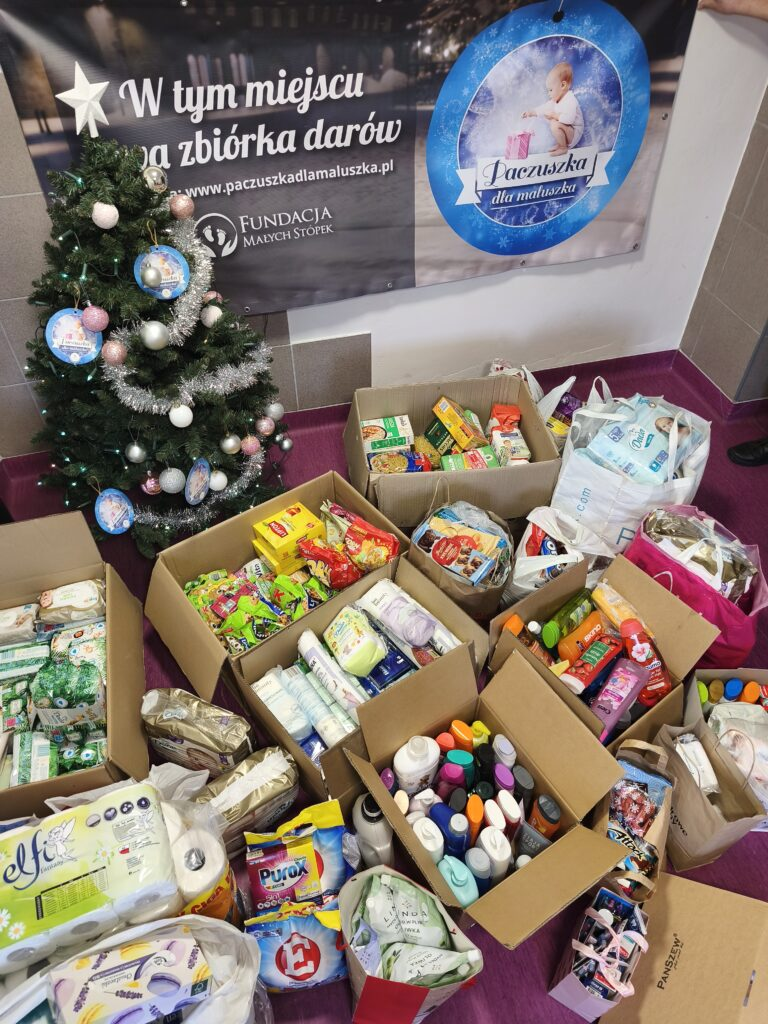 W grudniu uczniowie naszej szkoły włączyli się w akcję „Paczuszka dla Maluszka”. Zebraliśmy środki do pielęgnacji maluszków, pieluszki, kocyki, ręczniki, kaszki, mleko i wiele innych artykułów higienicznych, aby wesprzeć dzieci z Domu Samotnej Matki w Tarnowie. Ogólnopolską akcję organizowała Fundacja Małych Stópek.