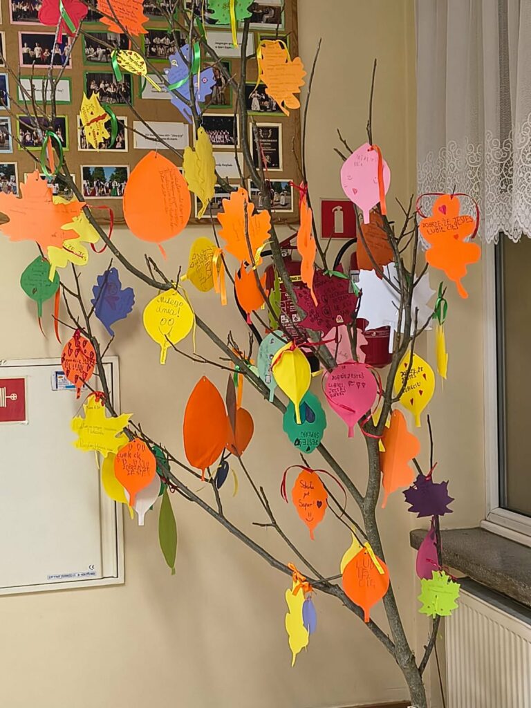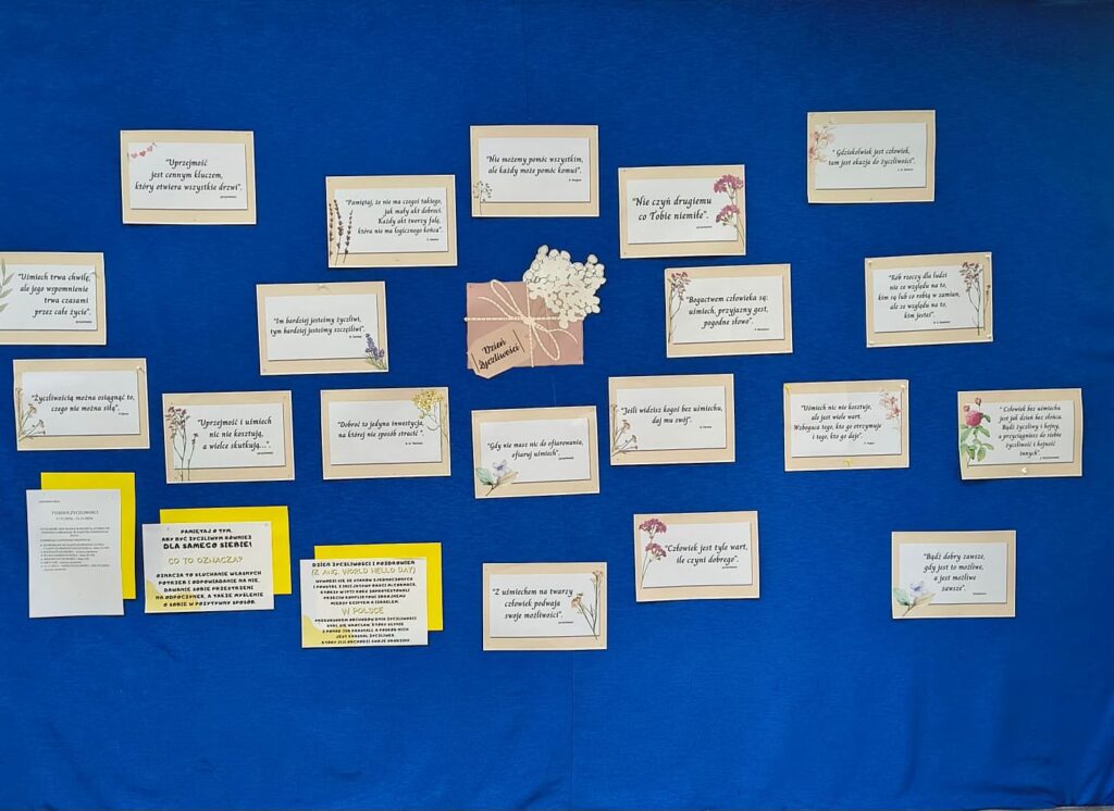 Klasy 4–8 także aktywnie włączyły się w działania. Przez cały tydzień rozdawały dobre słowa i motywujące sentencje, przygotowały Ścianę Dobrych Myśli oraz prowadziły bardzo